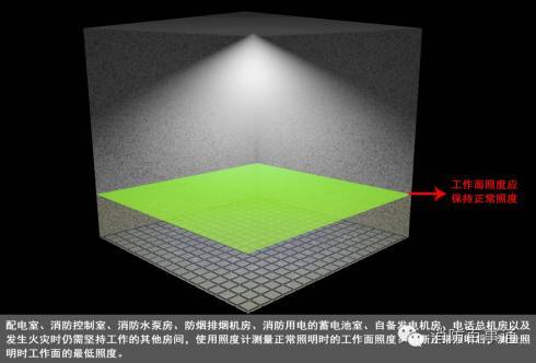 使用照度計測量應急照明燈地面中心-低照度不應低于0.5Lx,地下人防工程的照度不應低于5Lx,使用照度計測量消防控制室、消防水泵房、防煙排煙機房、消防用電的蓄電池室、自備發電機房、電話總機房等火災發生時仍需堅持工作的房間正常照明時工作面的照度和應急照明時工作面的照度,圖2-2、圖2-3。
